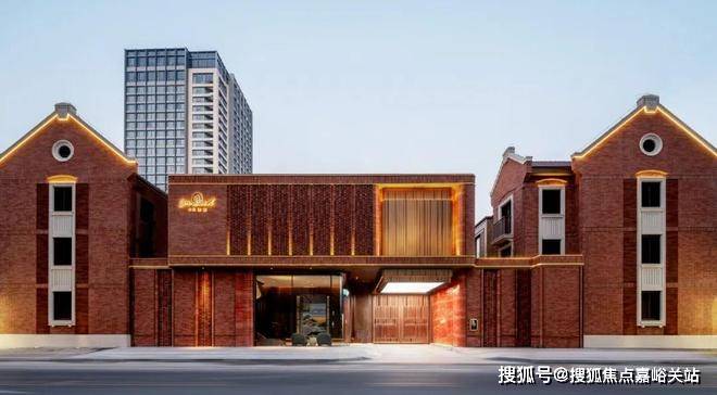 例如,在社区入户,目前已经完美呈现出来的,有强烈视觉冲击的立面大量的红砖、红洞石及大面积的落地弧形玻璃搭配的相得益彰,整个门头既有厚重的历史感,又不失极简主义的现代美。