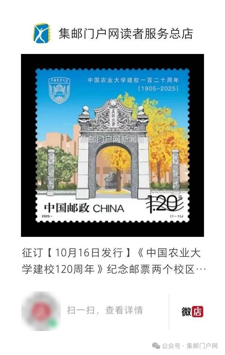 2025年10月16日发行:《中国农业大学建校120周年》纪念邮票全套1枚
