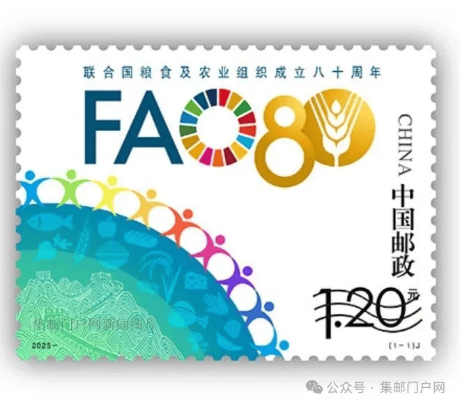 2025年10月16日发行:《联合国粮食及农业组织成立八十周年》纪念邮票全套1枚