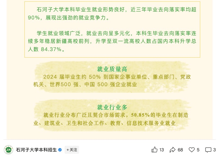 虽然常被调侃是“政策性211”,地理位置也稍显偏远,但人家毕业生的出路可是相当亮眼!最新就业数据显示,超一半的毕业生都奔向了国家企事业单位、党政机关和世界500强!选择深造的学子,也有85%左右能顺利进入双一流高校继续升级打怪。